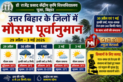 #MNN24X7 समस्तीपुर, संवाददाता: ग्रामीण कृषि मौसम सेवा, डॉ. राजेंद्र प्रसाद केंद्रीय कृषि विश्वविद्यालय (पूसा) समस्तीपुर एवं भारत मौसम विज्ञान विभाग […]