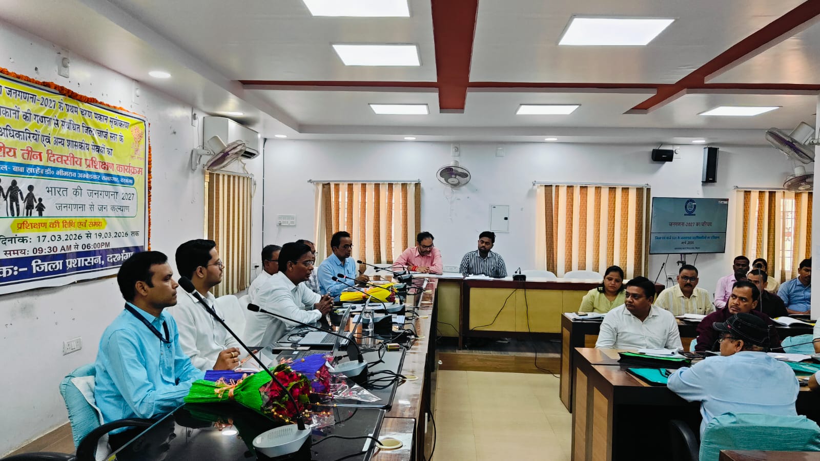 #MNN24X7 दरभंगा, 17 मार्च, समाहरणालय स्थित बाबा साहेब डॉ.भीमराव अंबेडकर सभागार में जनगणना 2027 के प्रथम चरण (मकान सूचीकरण एवं मकानों की गणना) से संबंधित जिला/चार्ज स्तर के अधिकारियों एवं शासकीय कर्मियों के लिए तीन दिवसीय जिला स्तरीय प्रशिक्षण कार्यक्रम का शुभारंभ जिलाधिकारी, दरभंगा कौशल कुमार की अध्यक्षता में किया गया। कार्यक्रम का उद्घाटन दीप प्रज्ज्वलित कर किया गया।