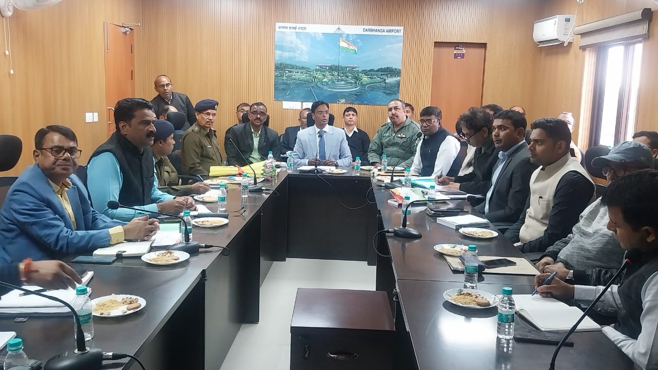 बैठक में दरभंगा हवाई अड्डे के समग्र विकास, कनेक्टिविटी, सुरक्षा एवं यातायात प्रबंधन से जुड़े विभिन्न बिंदुओं पर विस्तृत चर्चा की गई और संबंधित विभागों को आवश्यक दिशा–निर्देश दिए गए।