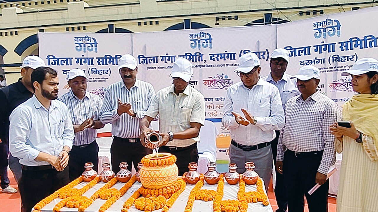 समाहरणालय परिसर में जिला पदाधिकारी-सह-अध्यक्ष, जिला गंगा समिति कौशल कुमार द्वारा “जल अर्पण” एवं जागरूकता पोस्टर के विमोचन के साथ किया गया।