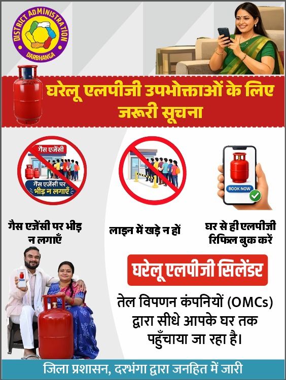 उपनिदेशक जनसंपर्क ने स्पष्ट कहा कि दरभंगा जिले में रसोई गैस की कोई कमी नहीं है तथा उपभोक्ताओं के लिए पर्याप्त मात्रा में गैस सिलेंडर उपलब्ध है।