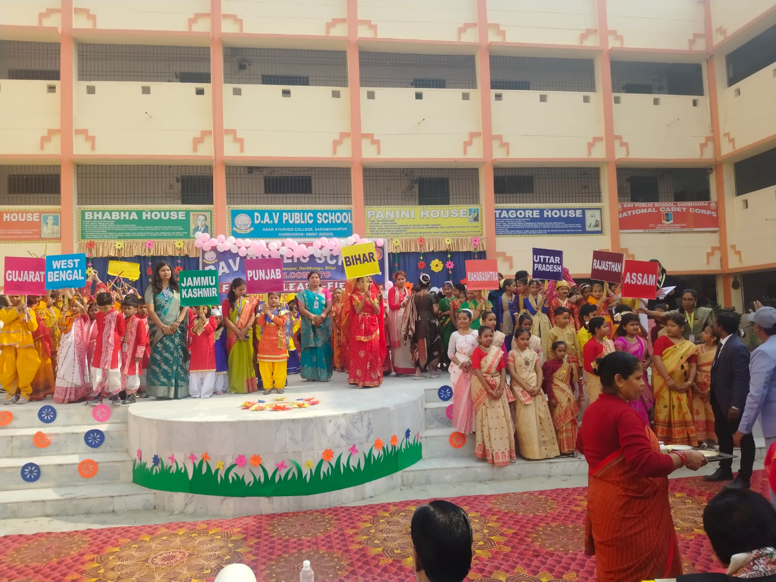 बच्चों ने अलग-अलग राज्यों पश्चिम बंगाल,जम्मू-कश्मीर, पंजाब, गुजरात, राजस्थान, असम, उत्तर प्रदेश, बिहार, महाराष्ट्र और केरल की संस्कृति,खान-पान, कला और विशेषताओं को मॉडल, चार्ट, नृत्य प्रस्तुति और प्रदर्शनी के माध्यम से दर्शाया।