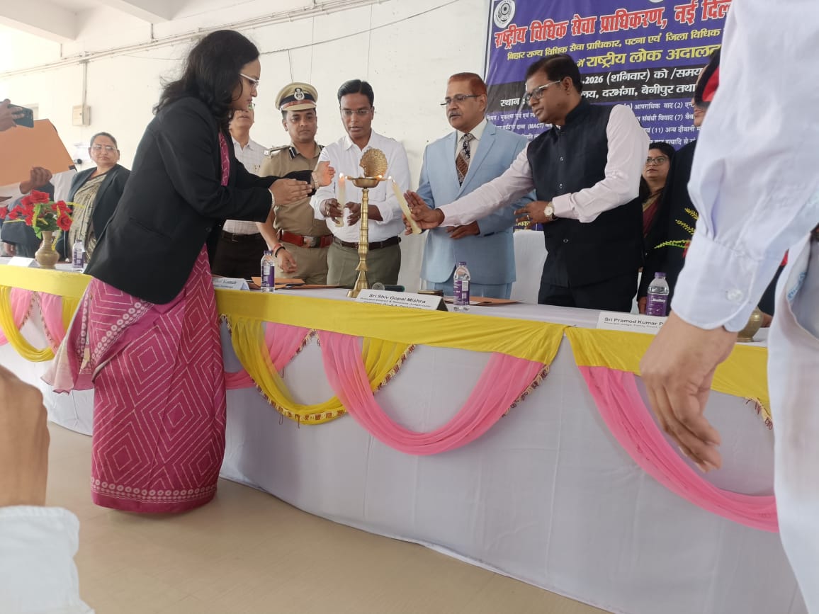 इस अवसर पर जिला एवं सत्र न्यायाधीश शिव गोपाल मिश्र, जिलाधिकारी दरभंगा कौशल कुमार, वरीय पुलिस अधीक्षक जगुनाथ रेड्डी तथा जिला विधिक सेवा प्राधिकार की सचिव आरती कुमारी ने संयुक्त रूप से दीप प्रज्वलित कर राष्ट्रीय लोक अदालत का शुभारंभ किये।