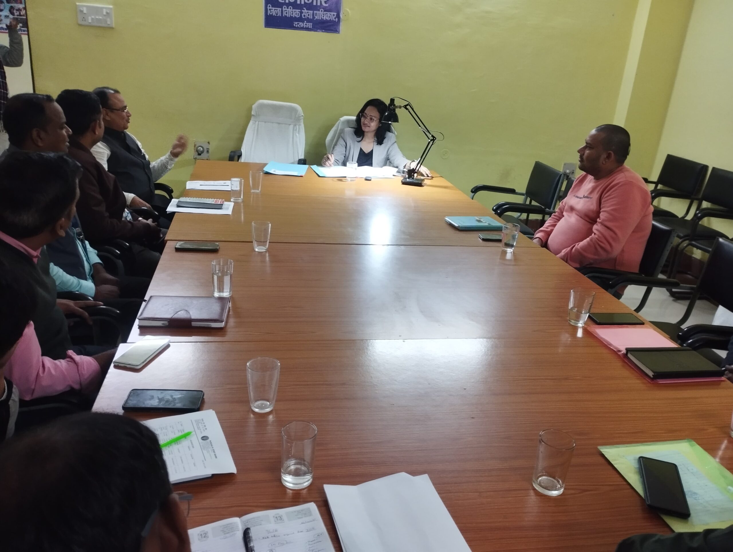 #MNN24X7 दरभंगा, 04 दिसम्बर, प्रधान जिला एवं सत्र न्यायाधीश सह अध्यक्ष, जिला विधिक सेवा प्राधिकार श्री शिव गोपाल मिश्र के निर्देश पर राष्ट्रीय लोक अदालत को लेकर बैंक अधिकारियों के साथ समीक्षात्मक बैठक एडीआर भवन मे हुई।