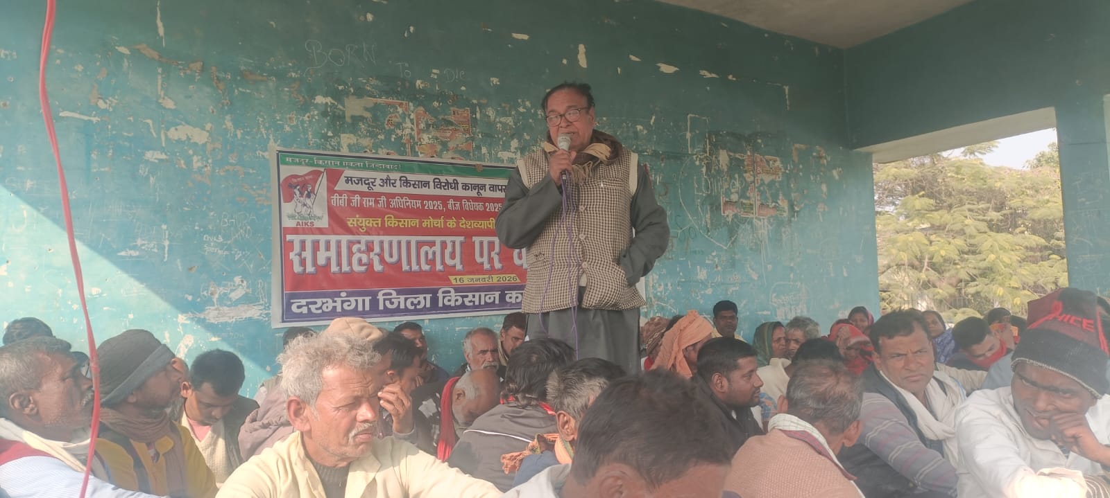 धरना स्थल पर आयोजित सभा की अध्यक्षता जिला अध्यक्ष महेश दुबे ने की। सभा को संबोधित करते हुए बिहार राज्य किसान काउंसिल के संयुक्त सचिव श्याम भारती ने कहा कि VB-GRAMG अधिनियम 2025 के माध्यम से मनरेगा मजदूरों के काम के अधिकार का हनन किया जा रहा है। इसी के खिलाफ पूरे देश में आज प्रतिरोध दिवस मनाया जा रहा है।
