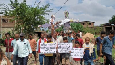 जर्जर सड़क नहीं बनने से आक्रोशित ग्रामीणों ने जुलूस निकालकर एमपी-एमएलए का पूतला फूंका।@MNN24X7